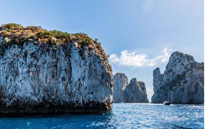 *Durante a alta temporada, visitar a Gruta Azul em Capri pode ser um desafio pois é possível haver longas filas e a capacida de de entrada pode ser limitada. Se não for possível a visita ou as condições climáticas não permitirem, nossos guias irão sugerir atrações alternativas para garantir um passeio satisfatório e memorável (por exemplo, as rochas Faraglioni).